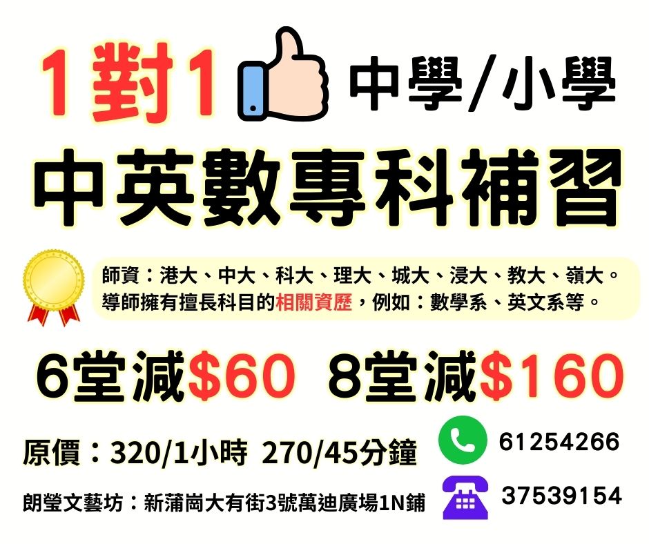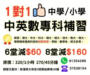 根據學生需要拔尖補底,由我們精心挑選的中文系/英文系/數學系等經驗導師任教,中/小學均可。